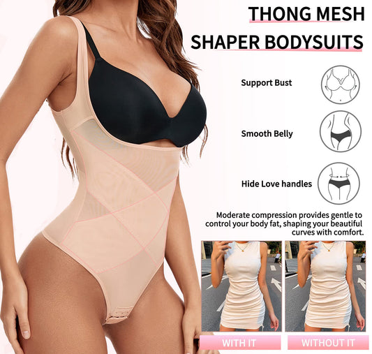 Tummy Control Thong full Body Bodysuit with Mesh Fajas Shape wear
